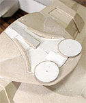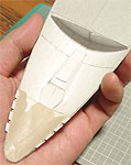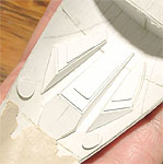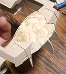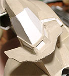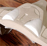 乾燥したエポパテを型紙ごと本体にのりで貼り付けます。