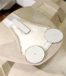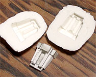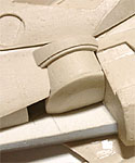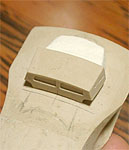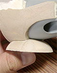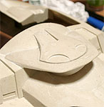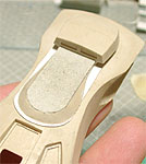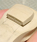 この原型作りは、自分が今まで使った素材では“インダストリアルクレイ”という粘土が一番いいです。硬さとシャープなエッジが作り出せ、かーるいかみねんどの圧力にも耐えられると思います。(都心に出る予定がないため今は手元にありません。) |