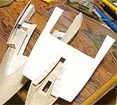 前部ランディングギア格納部の底ブタです。いつものように型紙とエポパテです。