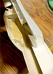 バーの細い部分には、強度アップの為、瞬着を染み込ませています。乾燥後表面をヤスリで整えて、その後に接着します。 |