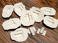 かーるいかみねんどで複製します。最後の写真を見てもらうと分かりますが、右端の原型に比べ複製品が微妙に小さいです。かみねんどの水分が抜け収縮するためです。今回は面倒くさいのでこのまま使ってしまいます。