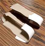 上で作った型紙を元に、ボール紙を切ります。実際にはボール紙の厚み分若干外周は長くなります。