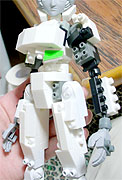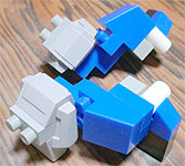 関節は特に二重関節などは設けなかったので、通常のダイヤブロックの可動範囲です。ただし胸部に関節が設けてあるので、かなり豊かな表情が出せると思います。