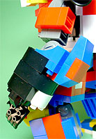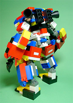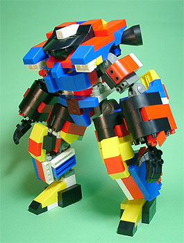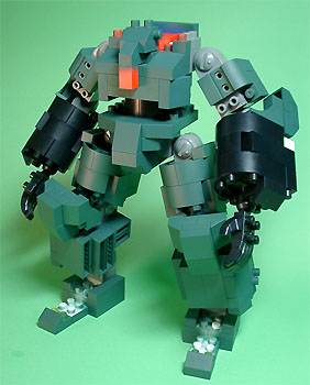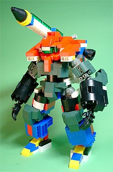 パーツの色調整。パワードスーツといえば色はオリーブドラブ(?)が王道ですが、ダイヤブロックで