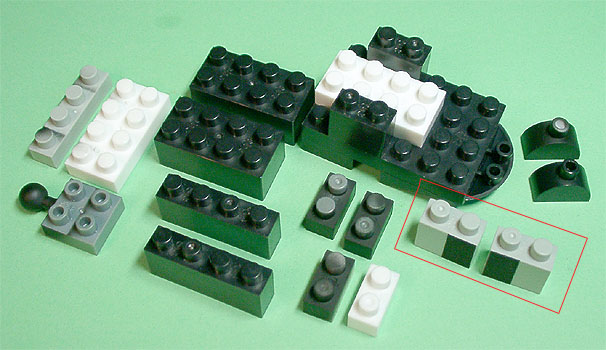 写真の赤枠で囲っているパーツは、グレーのパーツに1ポチ分黒いシールを貼ったものです。