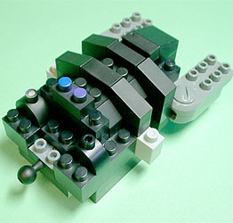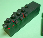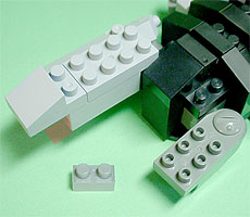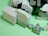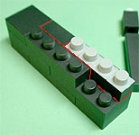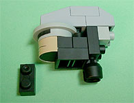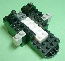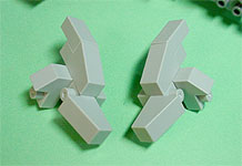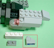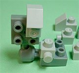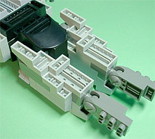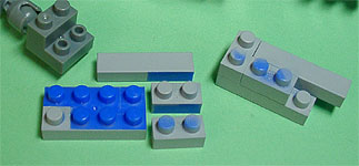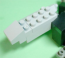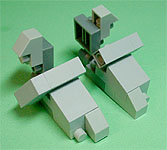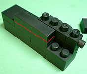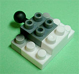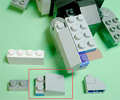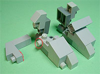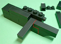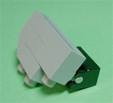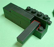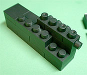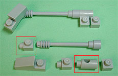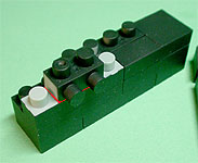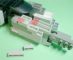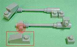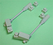 1ポチや2ポチのような接続面が小さく、また接続するところによって安定感が得られない場合、1ポチや2ポチパーツを横に添えて、ヒンジパーツの片面で押さえ込みます。こうすることによりパーツのグラつきを防ぐことが出来ます。 |