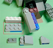 中央に付けているパーツは、2段の2ポチパーツとフタパーツです。