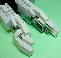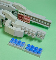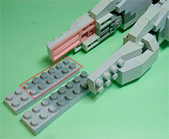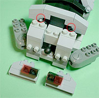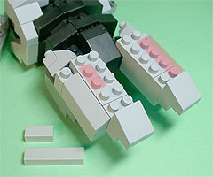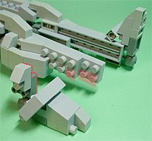 先ほど作ったパーツを写真の位置に取り付けたら、左足の方にも同じく取り付けます。