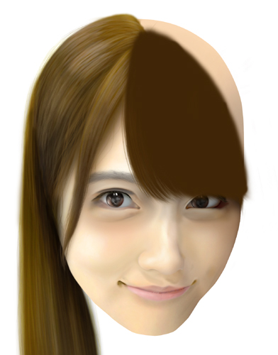 @髪の毛が描き上がりました。明暗によるバランスを調節して立体を整えます。