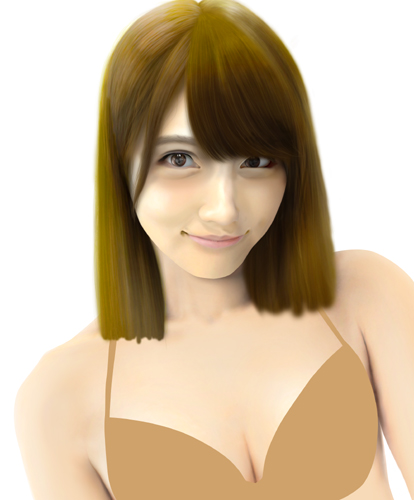 左手の調整とブラの上の髪の毛の追加、頭部の髪の毛の光の調節などを直しました。
