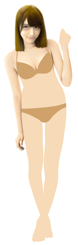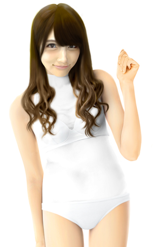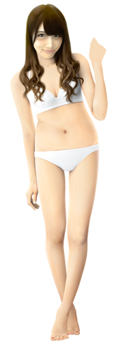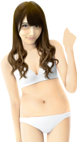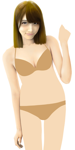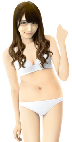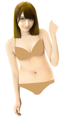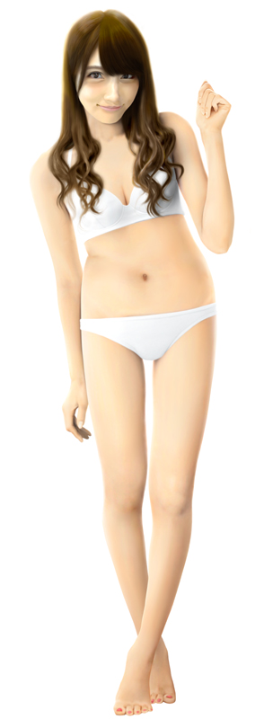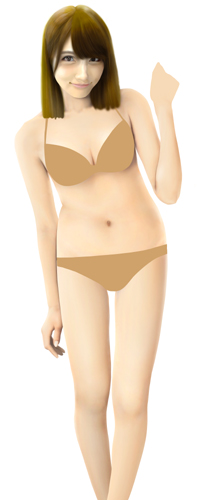 脚は一番細い状態で描いていますが、この状態での水着グラビアはなかなかなく、こういう体型の人という計算でボディラインを描いてみました。