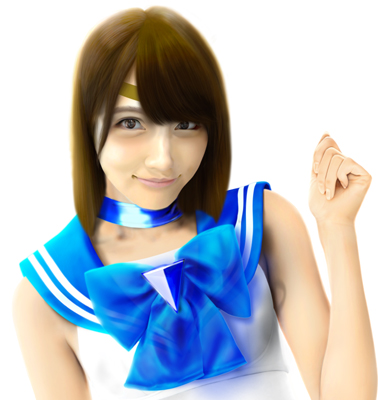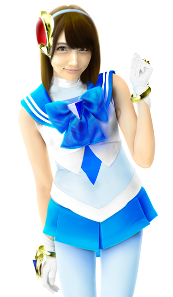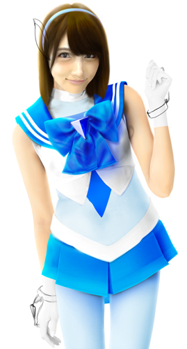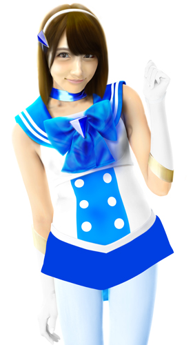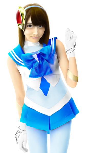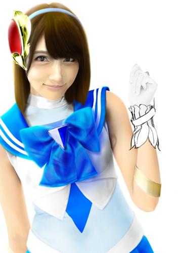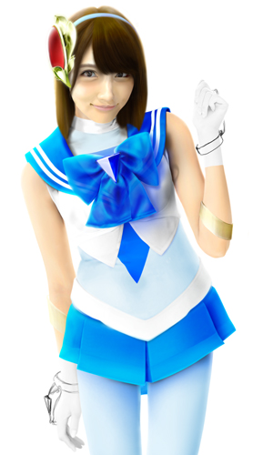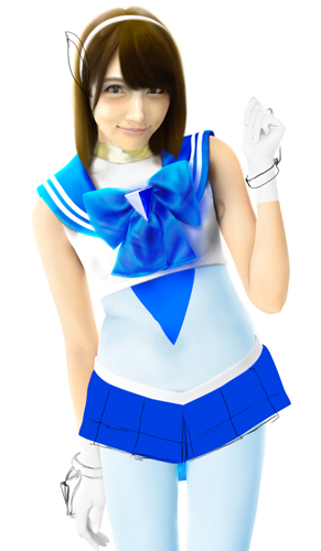 さて、これでセーラー戦士コスチュームは完成です。あとは髪の毛を元に戻し、髪の毛とセーラーの接地面を処理すれば完成です。 |