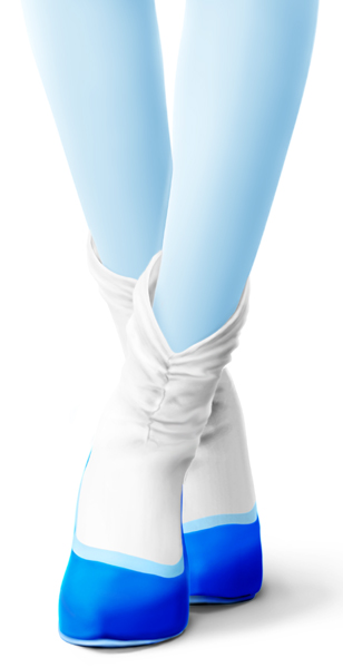 今見て思いましたが、これは白い部分はソックス ? と考えた方がいいような気がします。サテン素材で型がついているような感じのです。その上からクツを履きます。レッグウォーマー、アンクレットの感覚で考えます。
