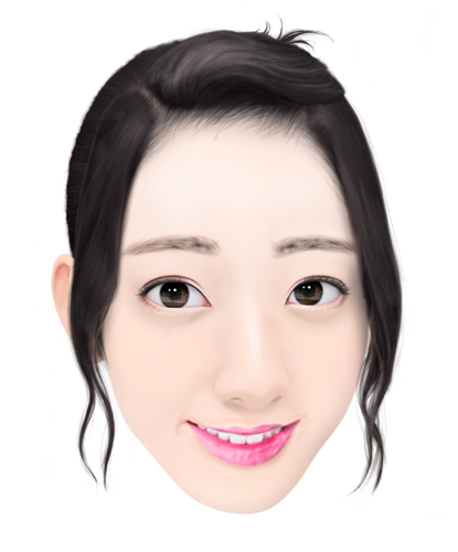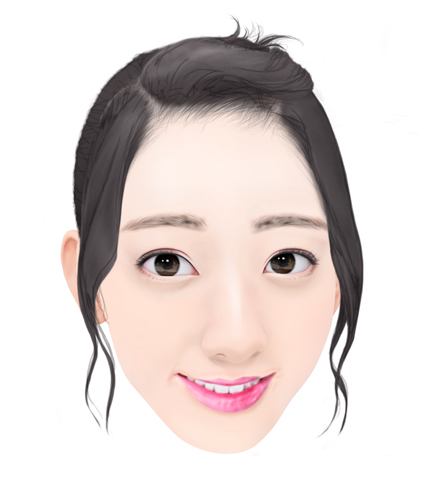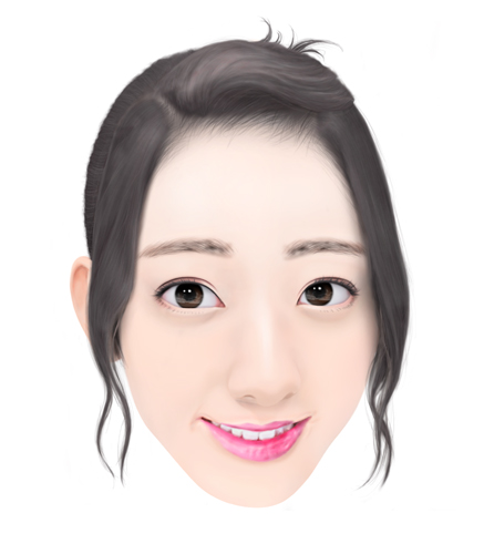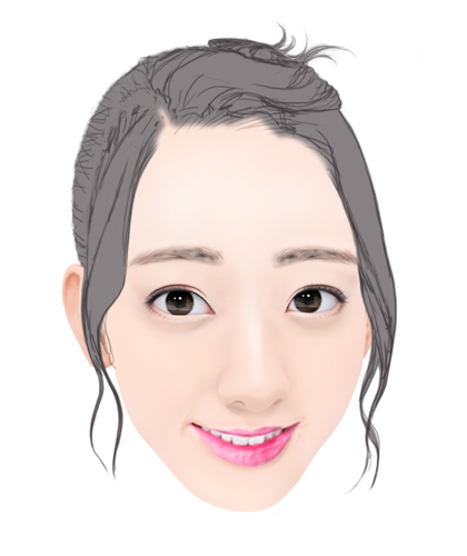 顔の輪郭付近と髪の毛の影を足しました。それと髪の毛を黒く調節しました。