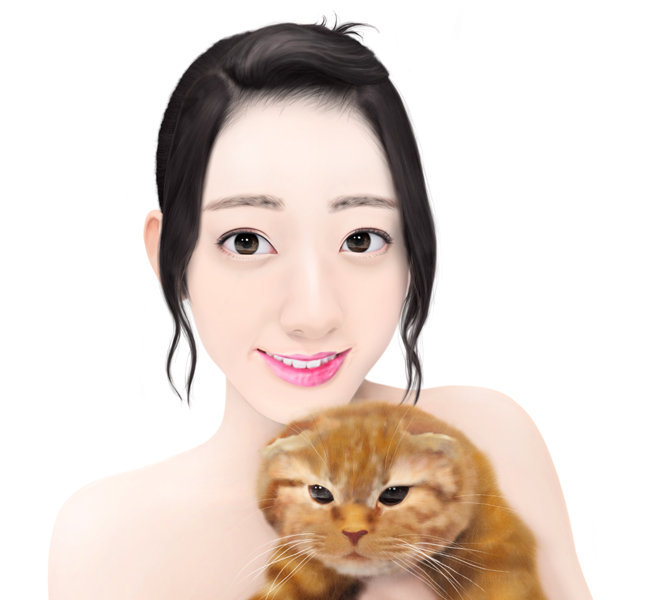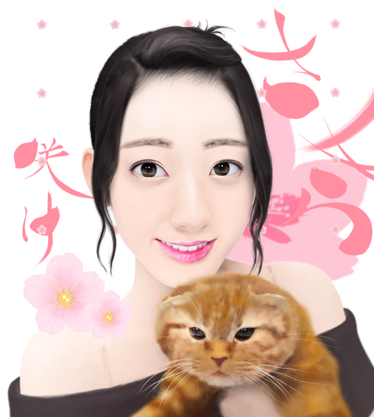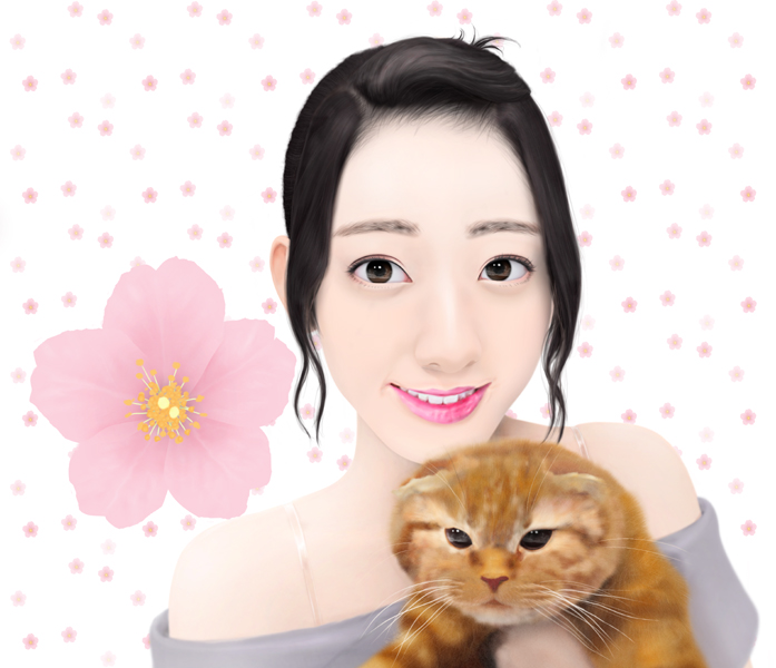 あと、宮脇咲良さんのペットのまるちゃんという猫がいます。この猫を描きたくて、なんとか一緒に絡めることは出来ないものかと色々考えましたが無理でした。いつまでたっても始められないので、とりあえず無い方向で始めました。