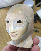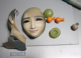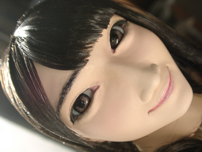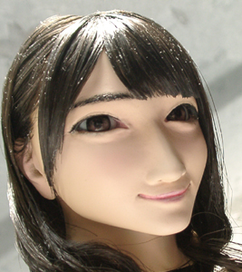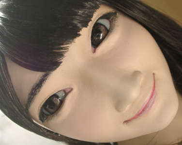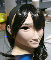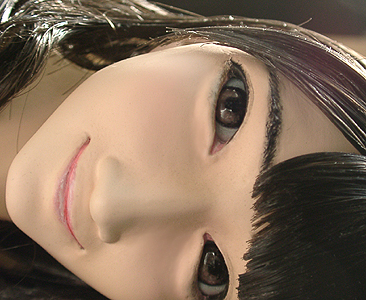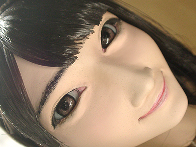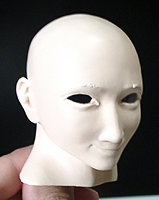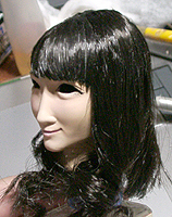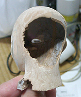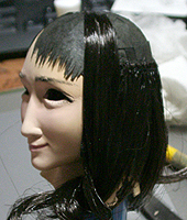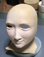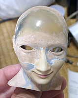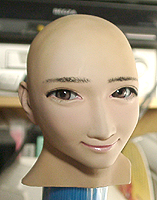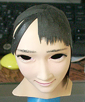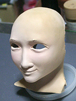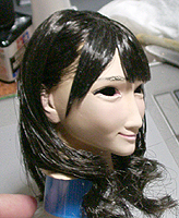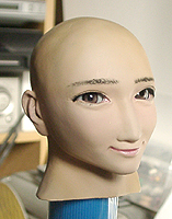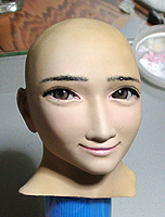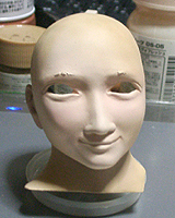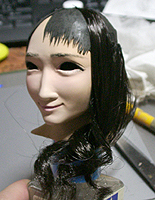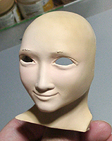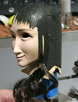 ここで初めて修正ポイントや、似ているか似ていないかがわかります。 修正ポイントは、まつ毛の端を削るか、描き足すことでなじませるかと、目をもう少し開かせるかです。 目の開き具合は、今の状態でも問題はないと思いますので、髪の毛を作った時点で判断したいと思います。 あんにんに似ているかどうかは、髪の毛をのせないとちょっとわかりません。あんにんに似せるよりは、 前の原形をキレイに見せることを目的にしてしまっています。そう意味では目的はかなっていると思いま す。髪の毛を作って似せられるポイントがあり、修正可能であれば直したいと思います。 |
