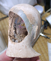 ■制作日記■ 胸像シリーズ、あんにん、奈々ちゃん、生駒ちゃんと作ってきましたが、取りあえず一段落ついた感じです。 技術と造型の定着、そして更なるレベルアップをするために作品を作り続ける。それはそれでいいんですけど、 同じかたちで他の女の子達を作っても意味がないと思っています。とはいえ、今の制作環境では、これ以上の 展開は難しいので、一旦休止にしたいと思います。気まぐれに誰かを作ってみたりするかもしれませんが。 今現在では、最新作の生駒ちゃんが一番出来がいいわけですが、このままだと最初に作ったあんにんが、なん だかしのびません。完全新作を作るのは上記の理由でできませんので、前回のものを改修することにしました。 限りなく新作に近い、バージョン1.9です。 |