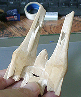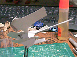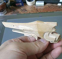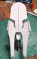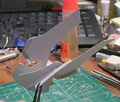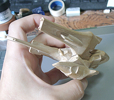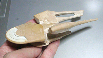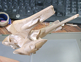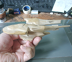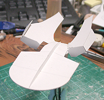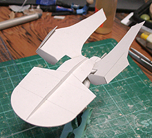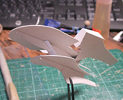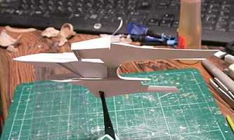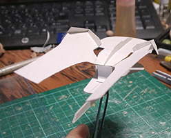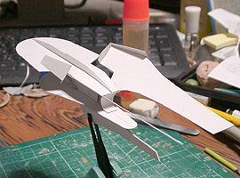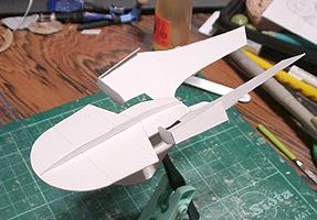 作ってみたところ、バランスが難し過ぎて、これを見ながら模型を作るのは無理と判断して、このまま、この紙を芯にしてパテを盛っていくことにしました。