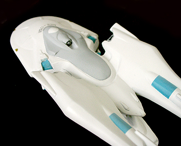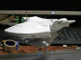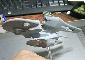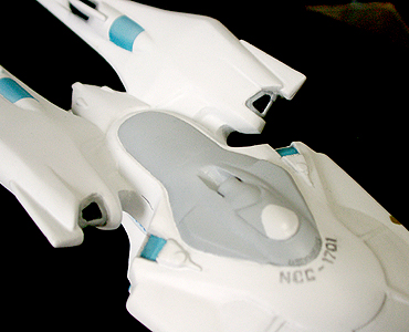 ワープエンジンは先端にパーツを着け、穴のあいているところをエンタープライズと同じようなパーツで埋めます。あとは全体の様子を見て小さなディテールを着けていきます。