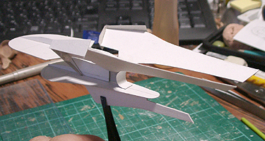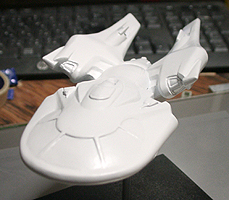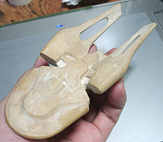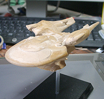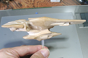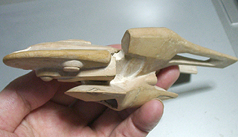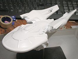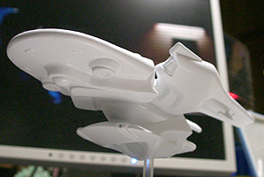 今回のデザインは非常にバランスが取りずらく、まったく立体が想像できませんでした。エンタープライズの特徴の円盤部、胴体部、ワープエンジン部、胴体とエンジンを繋ぐ翼を、全部一つに繋げてしまうというのが今回のデザインコンセプトです。