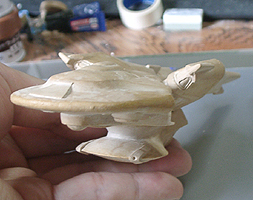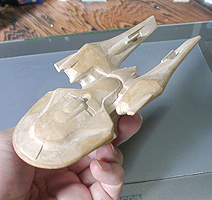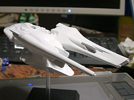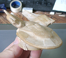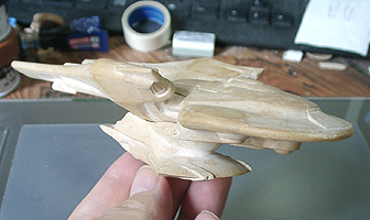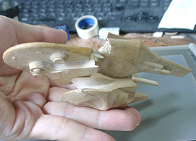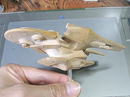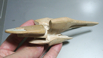 さて、このあと塗装に入ります。ということで形はこれで決まりということになります。デザイン的な点では、一番上の司令室がもっと少さいと巨大感が出るなと感じます。デザインもアップ用に形を考えてもいい気がします。今回のものは特に考えず、船体の流れの中で作っただけでした。