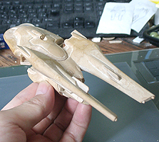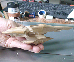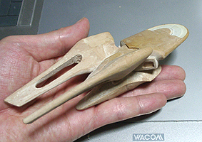 とまあ、こんな感じです。模型の大きさは15cmになります。今ものを作ると大体この位の大きさです。もっと大きく作りたいが、時間も掛かるし置く場所もないですからしょうがないですね。 |