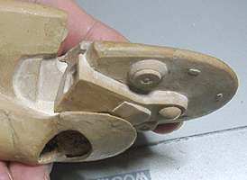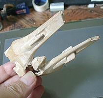 このあと三つのパーツを完全にくっ着け、その上でようすを見ます。問題がなければサフ吹き作業に移ります。 |