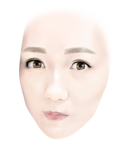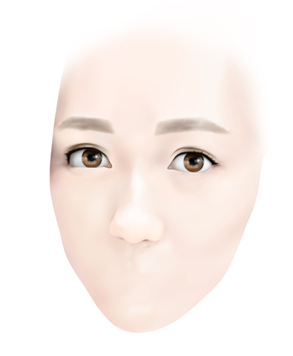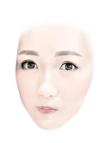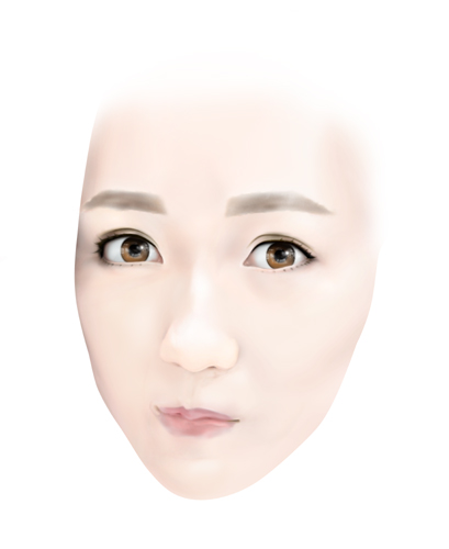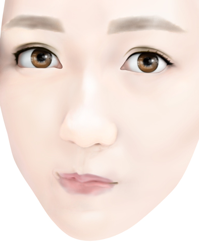 顔は輪郭を修正します。クチビルの色は今はほぼ無色の状態です。麻友さんに赤いクチビルのイメージはあまりないですね、どうしよう。