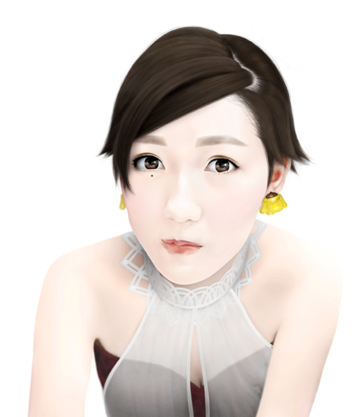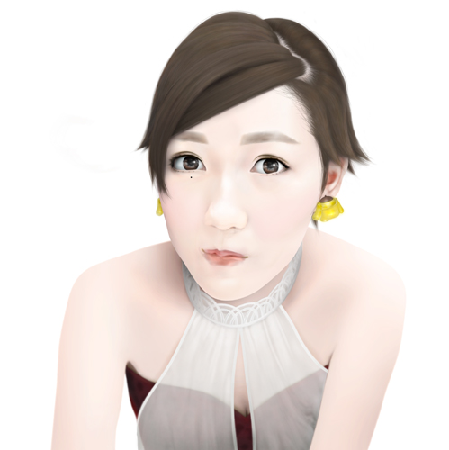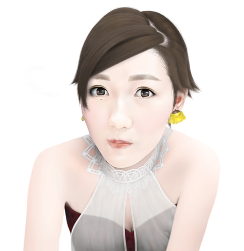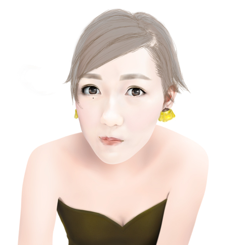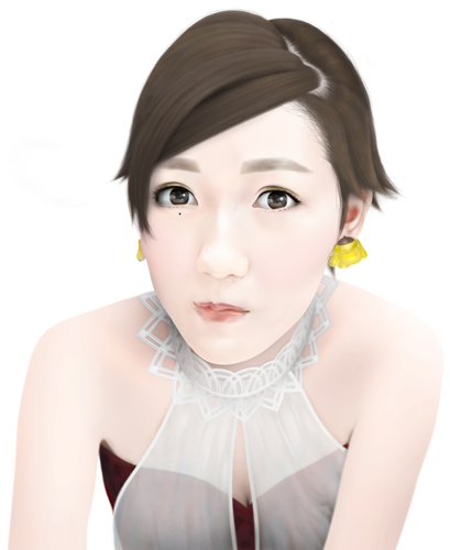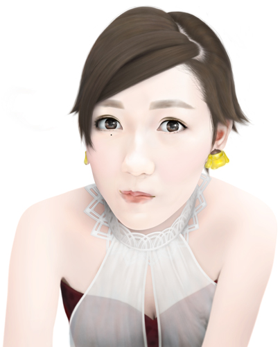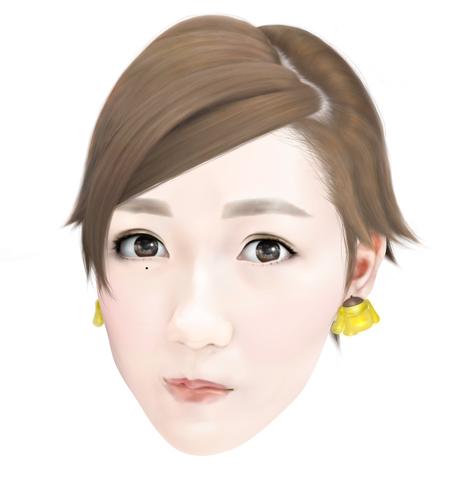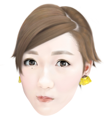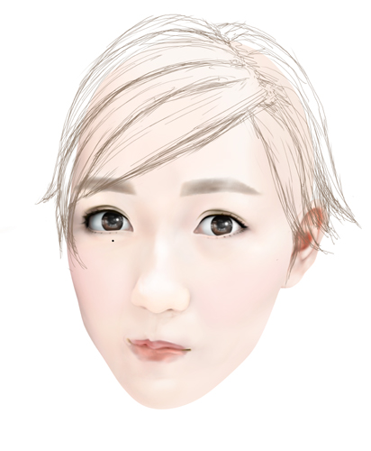 髪の毛は、あまりにも毛一本一本をきっちり描いたので、カッチリし過ぎてしまいました。適度なほつれ毛を上から乗せもうちょっとナチュラルにします。