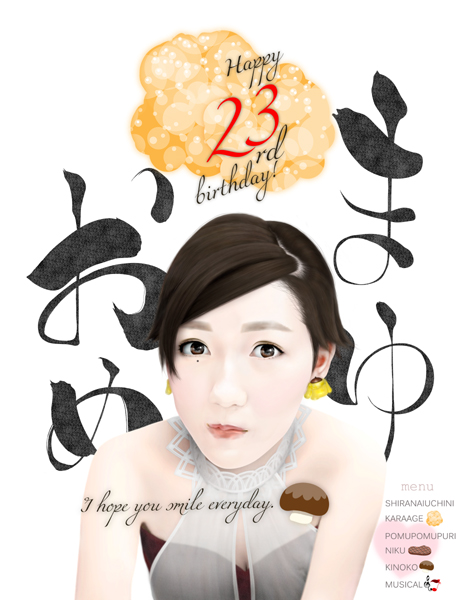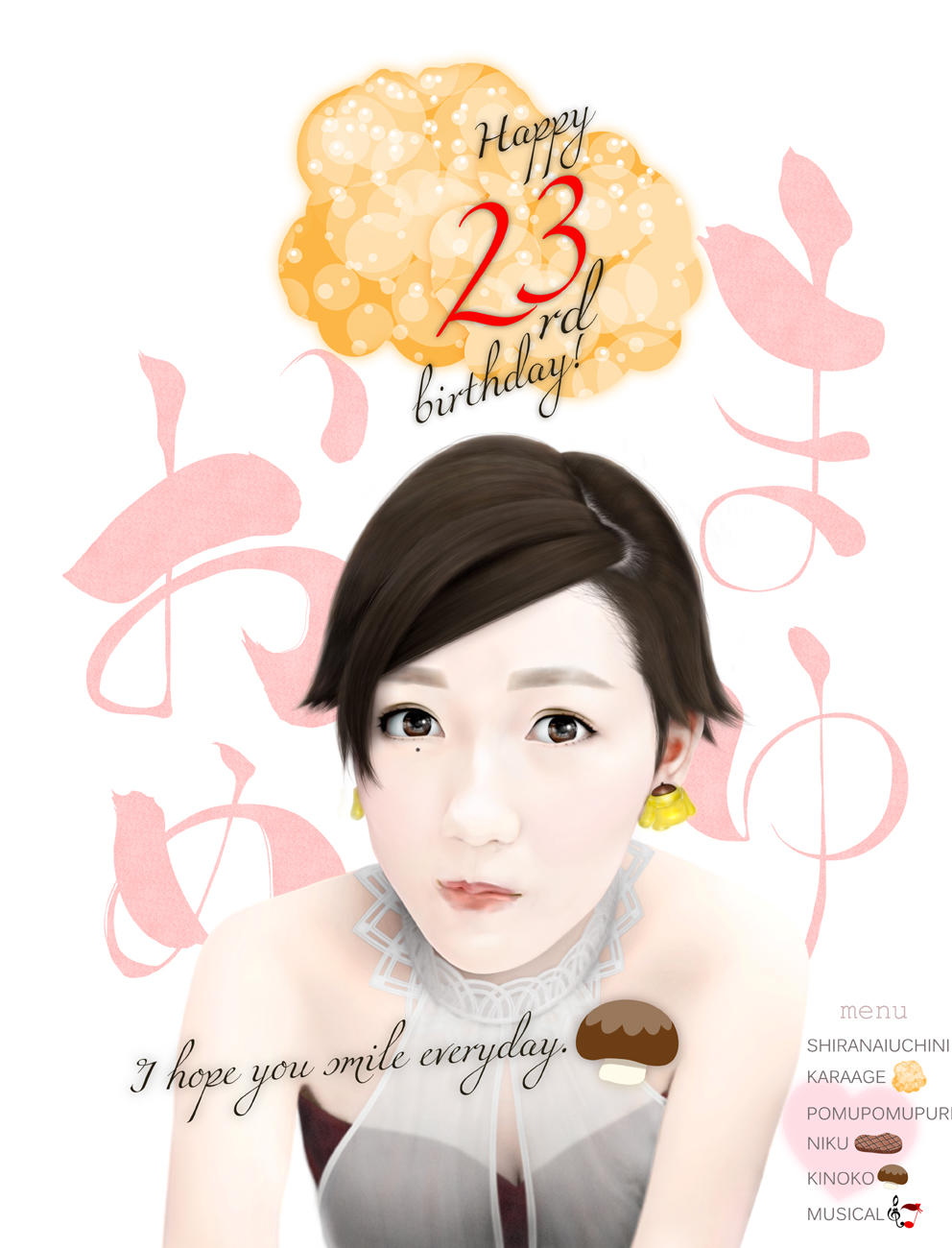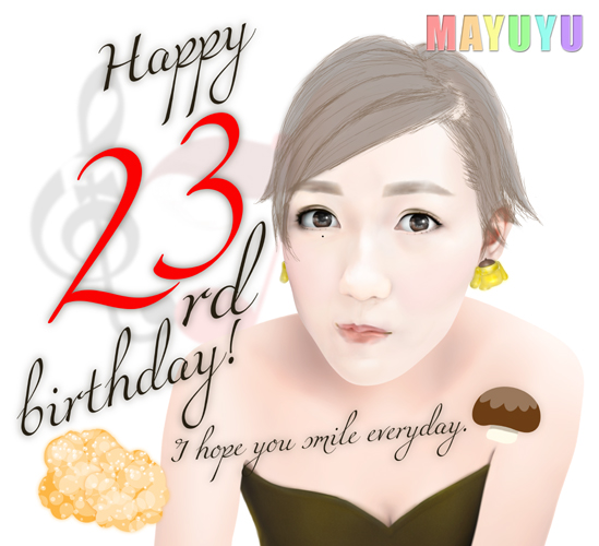 麻友さんに対してのバースデイイラストではありますが、作品でもあります。なるべく一作一作違うものを描いていきたいので、色々いじってる内に左のようなレイアウトになりました。とりあえず仮です。