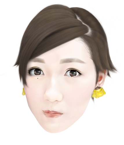 ポイントは前髪で、前髪とホクロで目を挟むイメージなのですが、前髪ができるだけ直線に流れなければ先のイメージが作りだせません。
