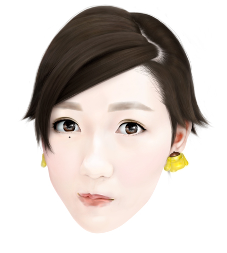 今考えている髪型は右側を見せたいんだけど、麻友さんは基本わけ目が左よりなので、このままでは描けない。ホクロの位置を逆にして自撮りの反転とすれば可能だが。