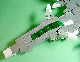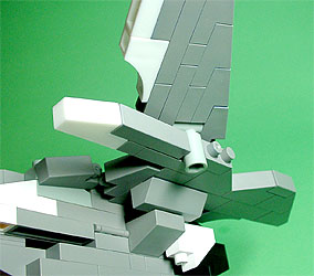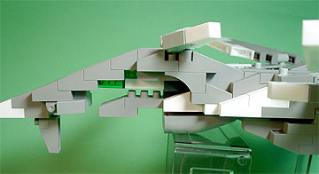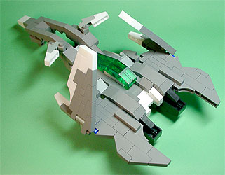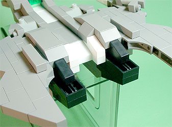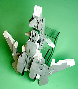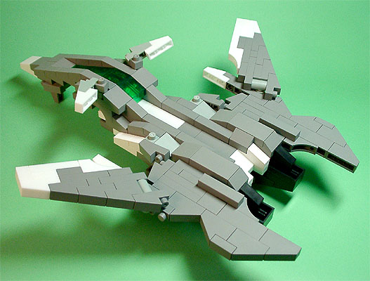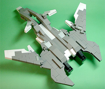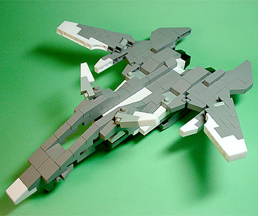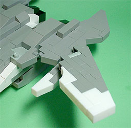 尾翼の可動も考えたがシルエットが崩れるため断念しました。プラモ的工作が出来るならばブロックの角を